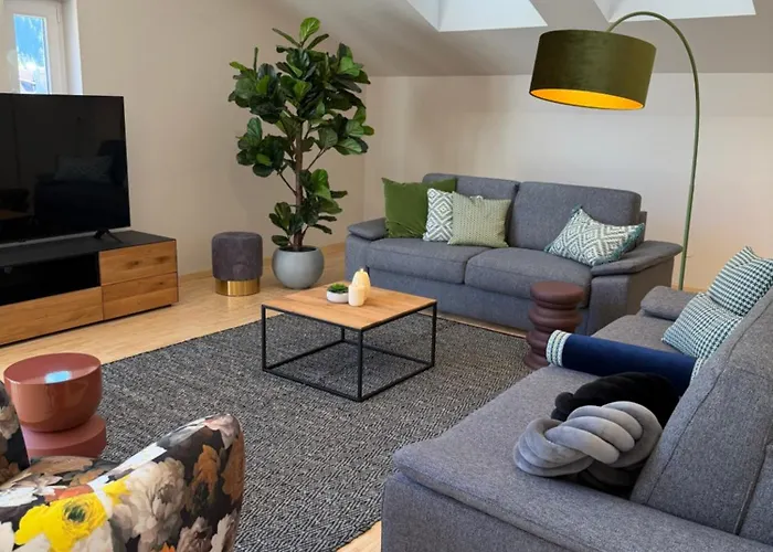 - ❓Czy w apartamencie Penthouse Thaler znajduje się kuchnia do użytku gości?Tak, apartament Penthouse Thaler wyposażony jest w wyposażoną kuchnię i oferuje czajnik elektryczny, lodówkę i szklane naczynia.